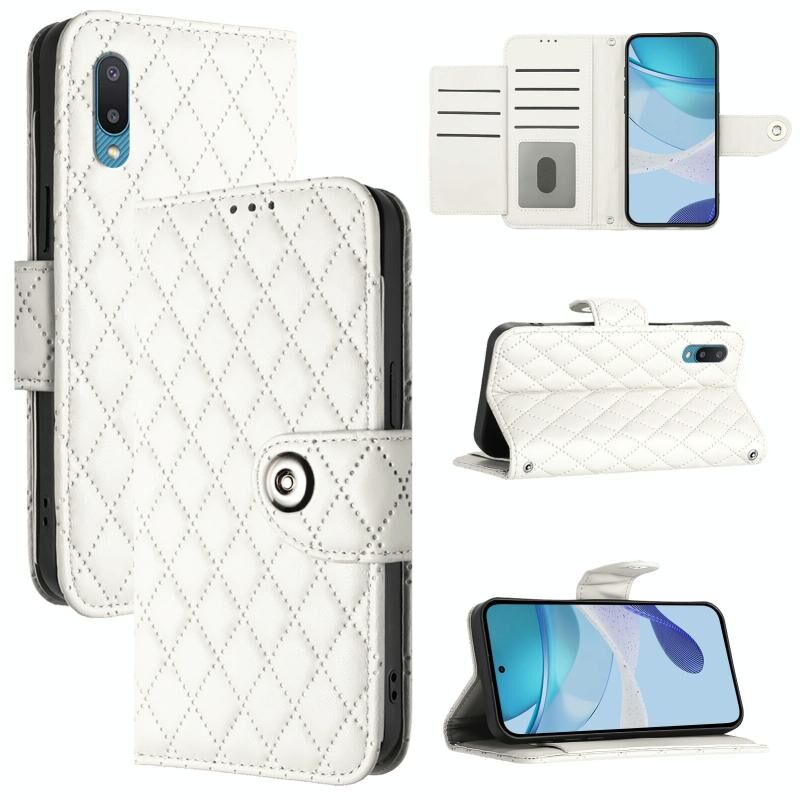 Για Samsung Galaxy A02 / M02 Rhombic υφή Flip δερμάτινη θήκη τηλεφώνου με κορδόνι (λευκό)