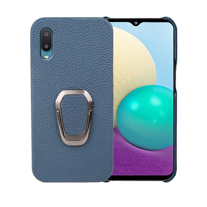 Θήκη τηλεφώνου από γνήσιο δέρμα με υφή λitchi για Samsung Galaxy A02 / M02 με δακτύλιο στήριξης (Μαύρο)