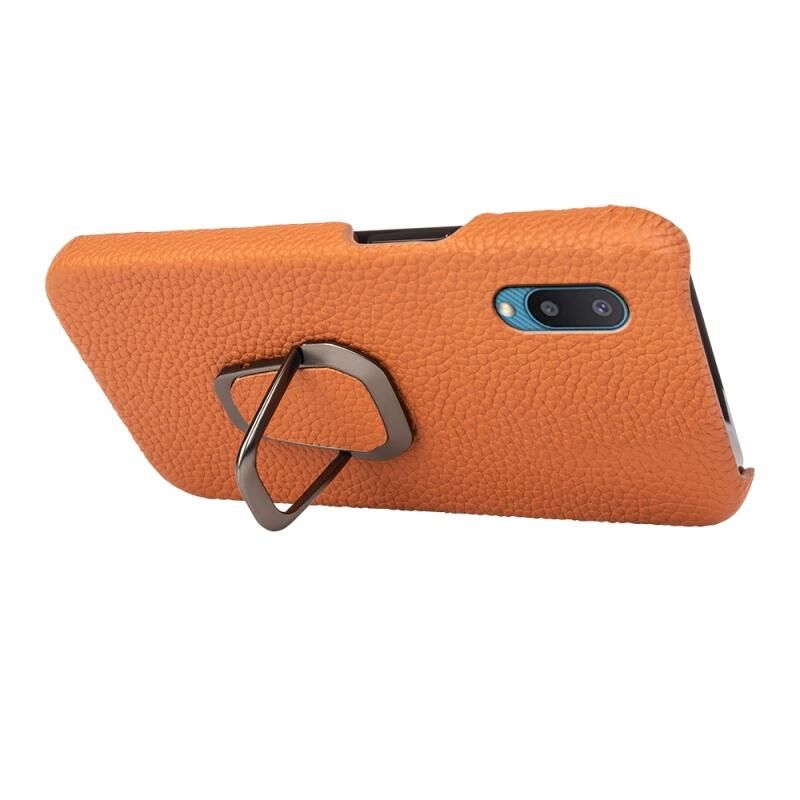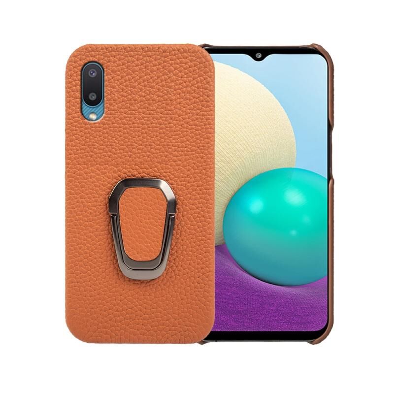 Θήκη τηλεφώνου από γνήσιο δέρμα με υφή λitchi για Samsung Galaxy A02 / M02 με δακτύλιο στήριξης (Μαύρο)