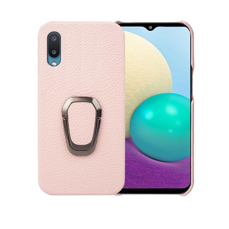 Θήκη τηλεφώνου από γνήσιο δέρμα με υφή λitchi για Samsung Galaxy A02 / M02 με δακτύλιο στήριξης (Μαύρο)