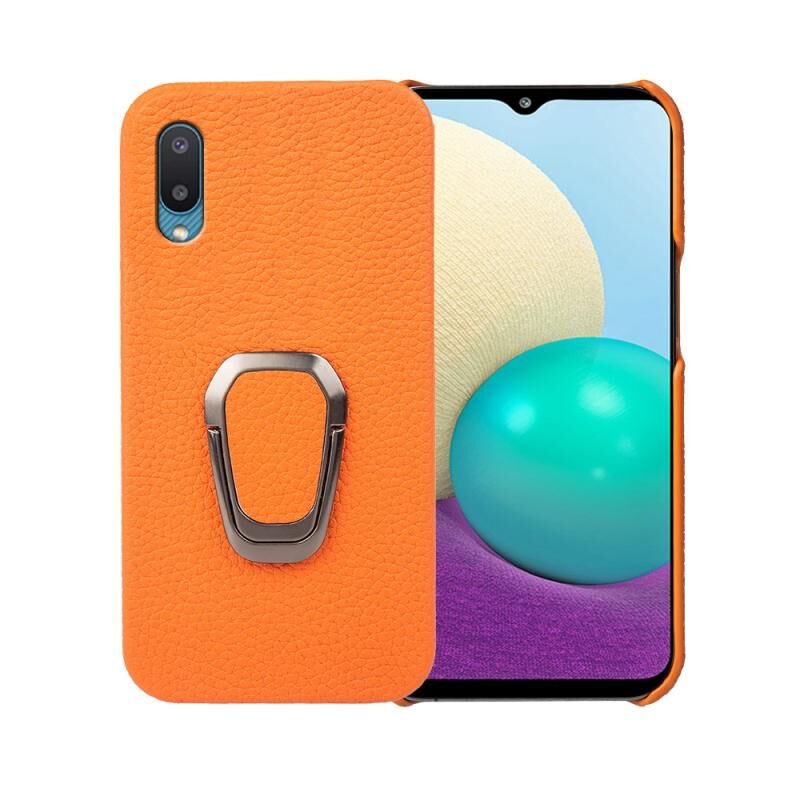 Θήκη τηλεφώνου από γνήσιο δέρμα με υφή λitchi για Samsung Galaxy A02 / M02 με δακτύλιο στήριξης (Μαύρο)