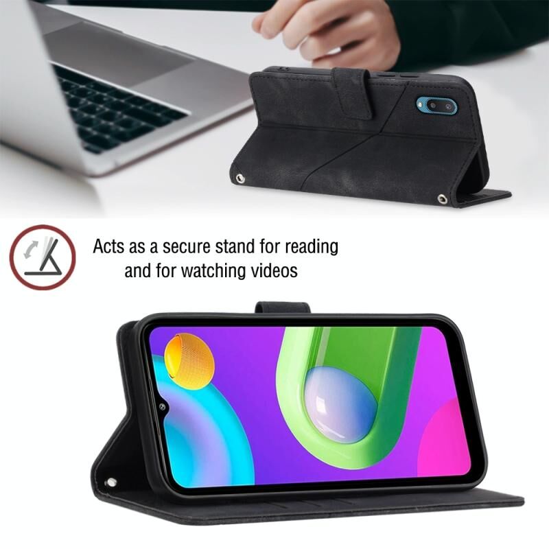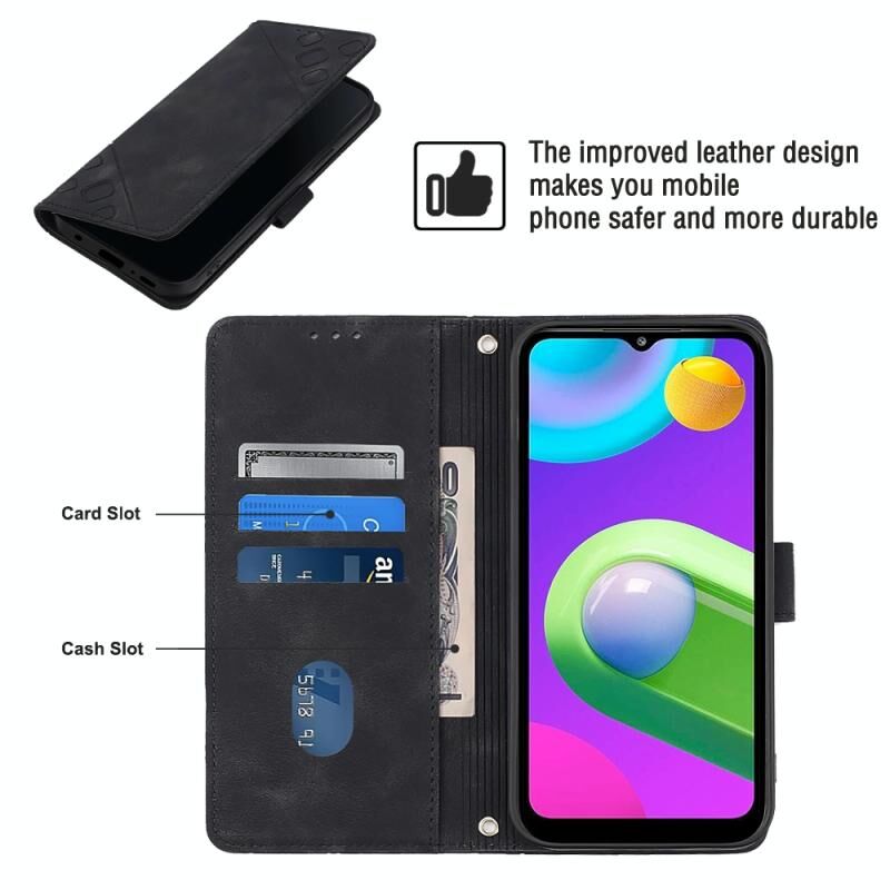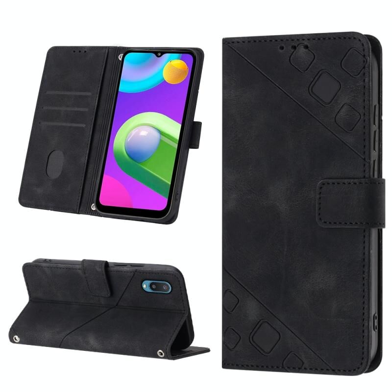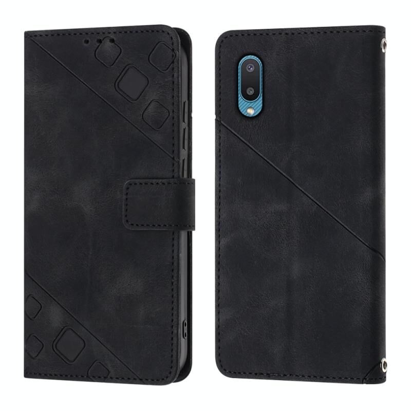Για Samsung Galaxy A02 / M02 Skin-feel ανάγλυφη δερμάτινη θήκη τηλεφώνου (μαύρο)