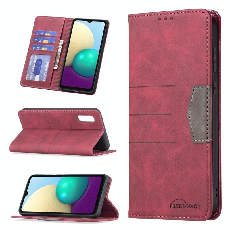 Για Samsung Galaxy A02 Μαγνητική θήκη τηλεφώνου με δερμάτινη επένδυση (κόκκινο)