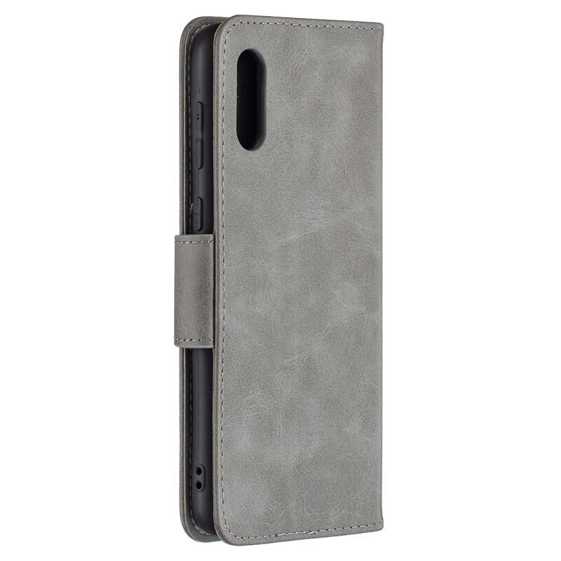 Για Samsung Galaxy A02 Ρετρό Lambskin υφή καθαρό χρώμα οριζόντια Flip PU δέρμα υπόθεση με θήκη & υποδοχές για κάρτες & πορτοφόλι & κορδόνι (Γκρι)