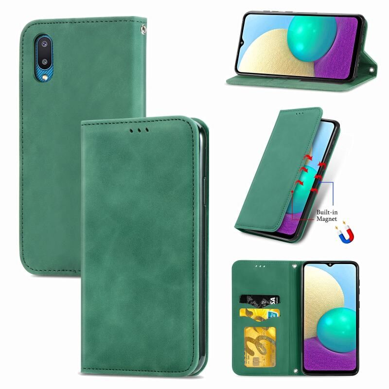 Για Samsung Galaxy A02 Retro Skin Feel Business μαγνητική οριζόντια Flip δερμάτινη θήκη με υποδοχές για κάρτες & πορτοφόλι & πλαίσιο φωτογραφιών (πράσινο)