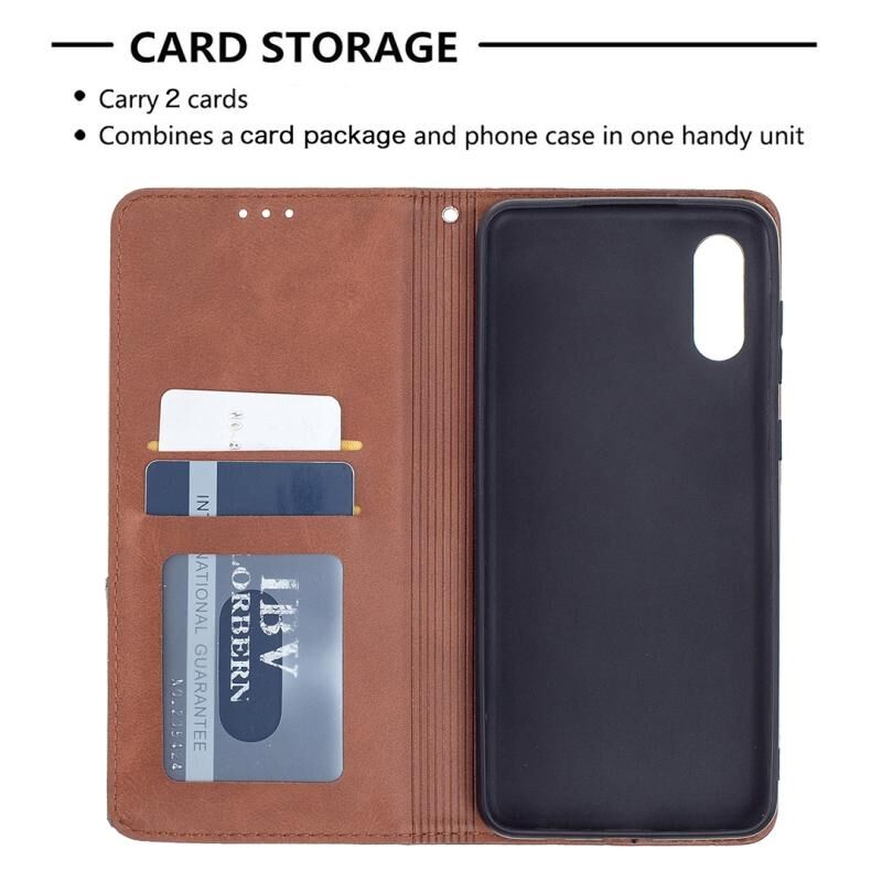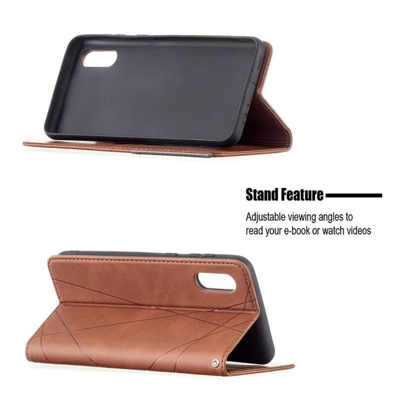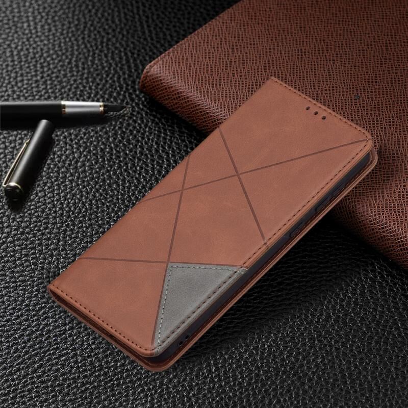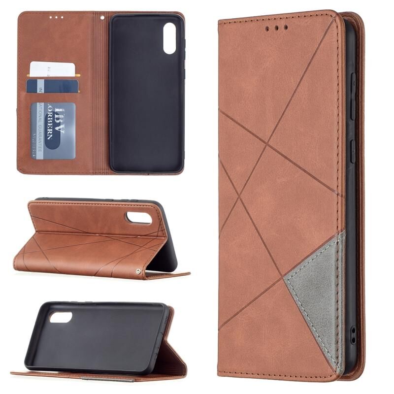 Για Samsung Galaxy A02 Rhombus υφή οριζόντια Flip μαγνητική δερμάτινη θήκη με υποδοχή & υποδοχές για κάρτες (καφέ)