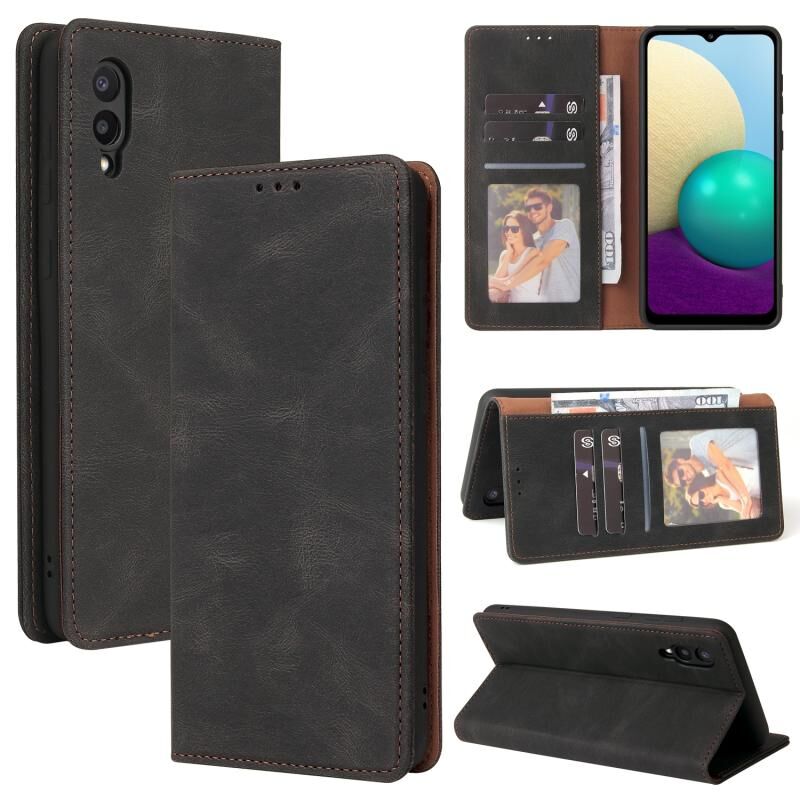 Για Samsung Galaxy A02 Απλή θήκη οριζόντιας αναδιπλούμενης δερμάτινης θήκης με υποδοχή για κάρτες και πορτοφόλι (Μαύρο)