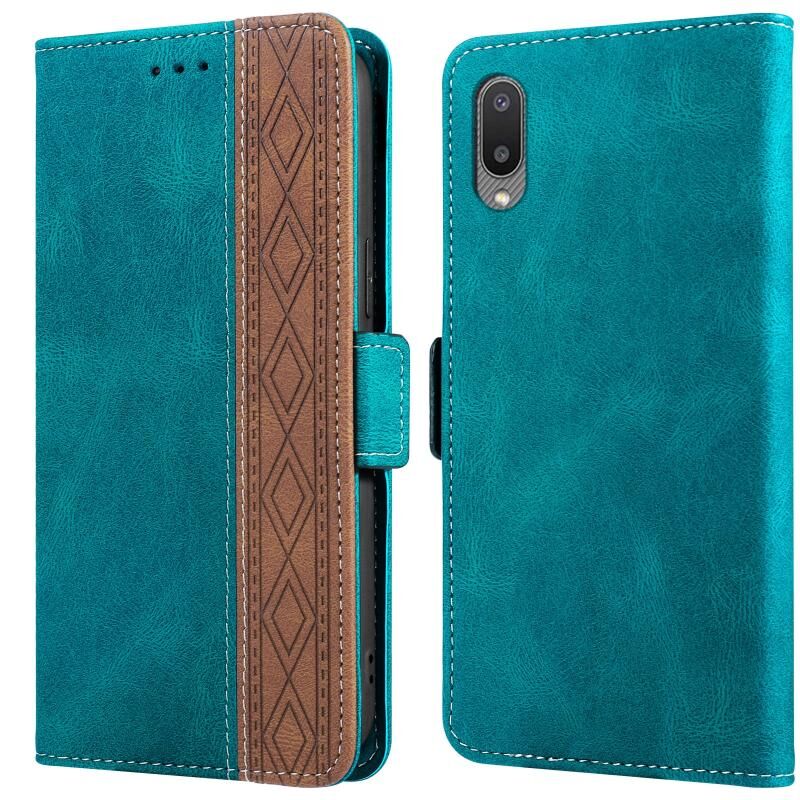 Για Samsung Galaxy A02 ραφή Side-Magnetic RFID δερμάτινη θήκη τηλεφώνου (Σκούρο πράσινο)