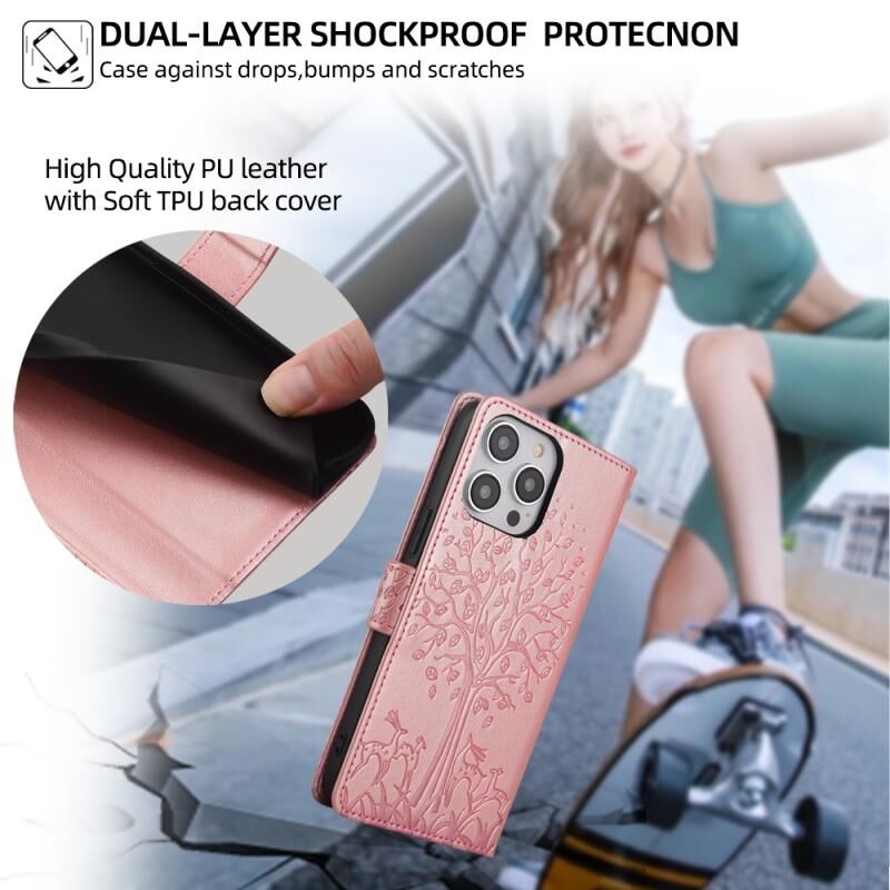 Για Samsung Galaxy A02 δέντρο & ελάφι ανάγλυφη δερμάτινη θήκη τηλεφώνου (ροζ χρυσό)