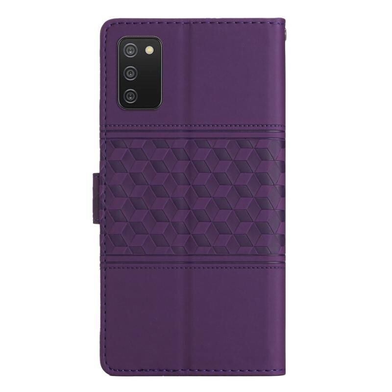 Για Samsung Galaxy A02s 164mm Diamond ανάγλυφο δέρμα αίσθηση δέρμα τηλέφωνο υπόθεση με κορδόνι (μωβ)