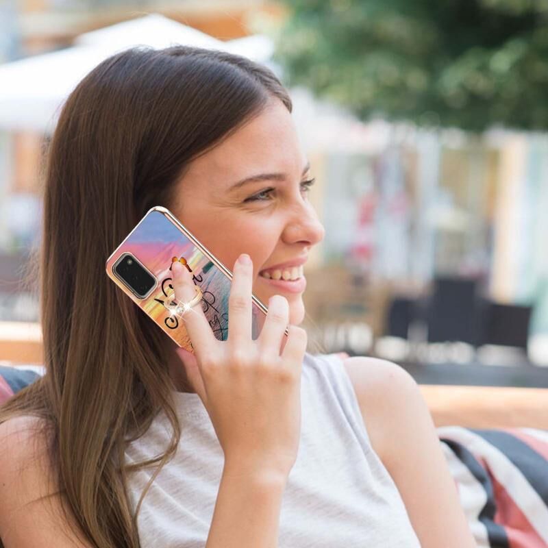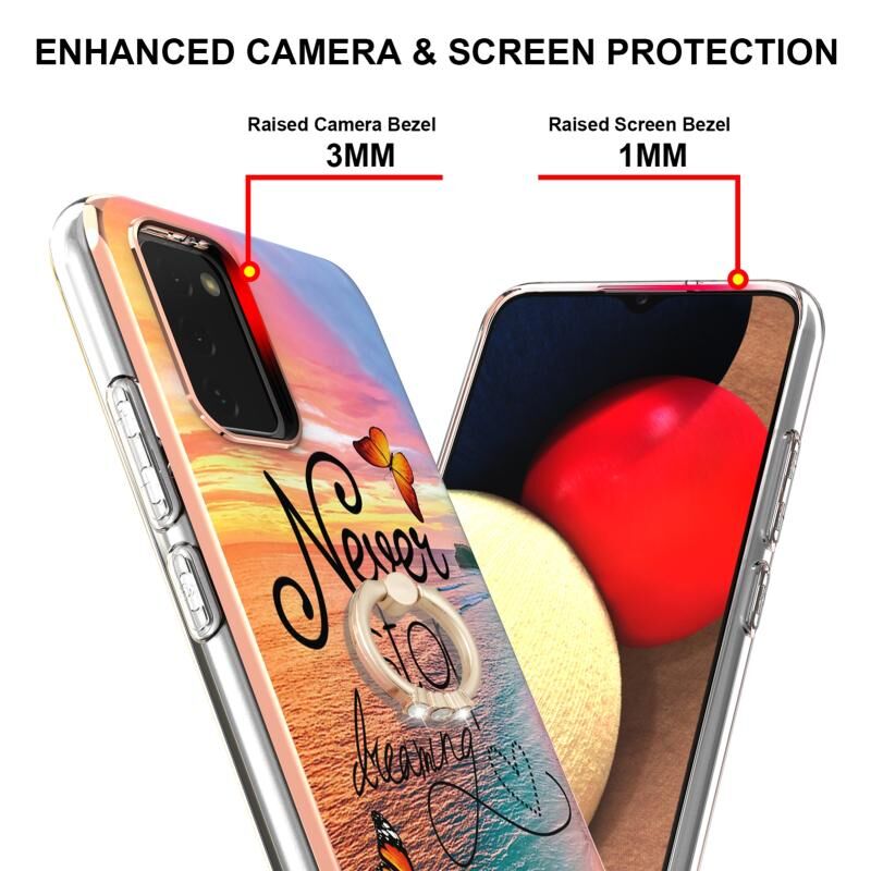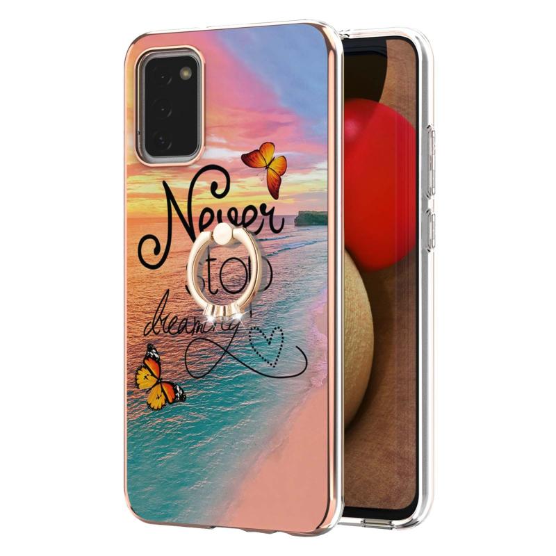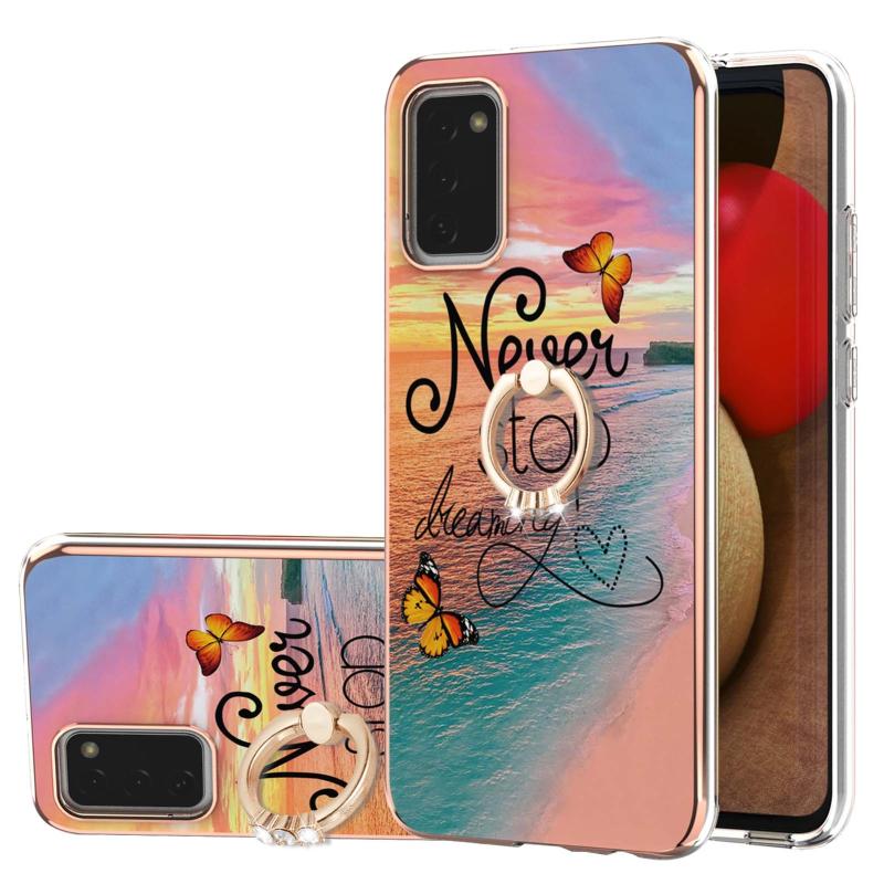 For Samsung Galaxy A02s 164mm Electroplating Pattern IMD TPU Shockproof Case with Rhinestone Ring Holder(Dream Chasing Butterfly)