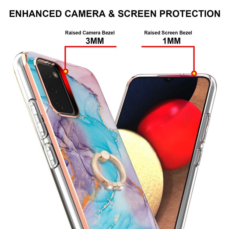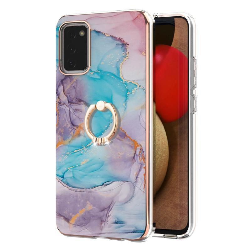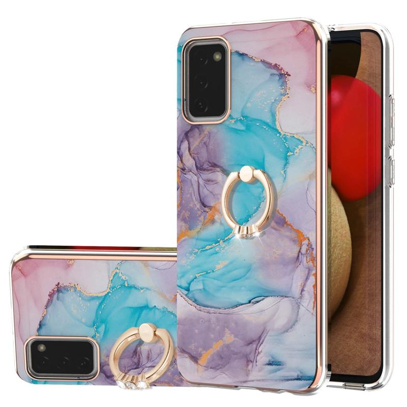 For Samsung Galaxy A02s 164mm Electroplating Pattern IMD TPU Shockproof Case with Rhinestone Ring Holder(Milky Way Blue Marble)