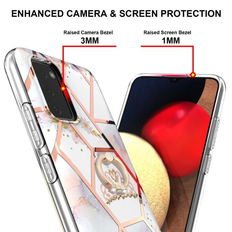 Θήκη προστασίας TPU με ενσωματωμένη βάση δακτυλιδιού με ρητίνες (Imperial Crown) για Samsung Galaxy A02s 164mm, με γαλβανισμό, συνδυασμό χρωμάτων και σχέδιο μαρμάρου με λουλούδια, αντικραδασμική.