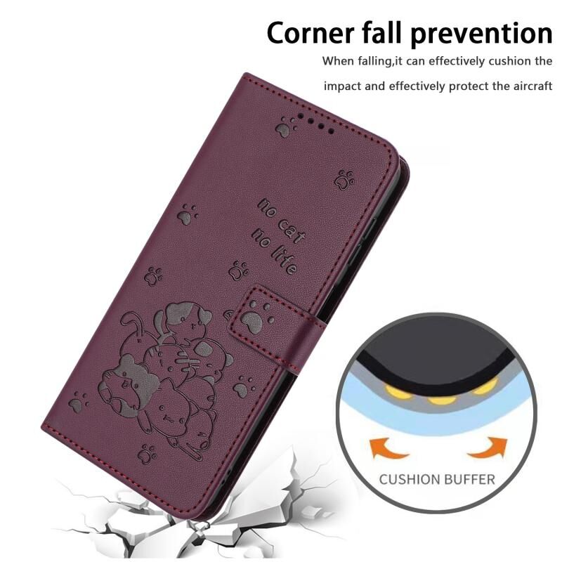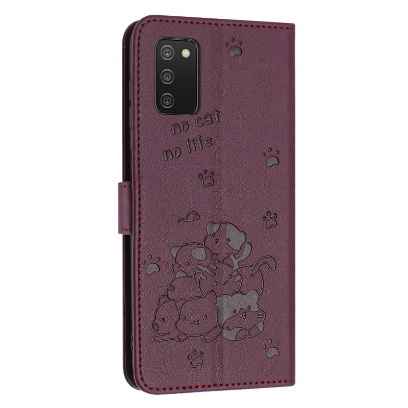 Θήκη δερμάτινη για Samsung Galaxy A02s 164mm με ανάγλυφο γατάκι και κορδόνι (Μωβ)