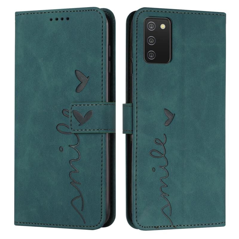 Για Samsung Galaxy A02S 164mm έκδοση ΕΕ δέρμα αίσθηση καρδιά μοτίβο δερμάτινη θήκη τηλεφώνου (πράσινο)