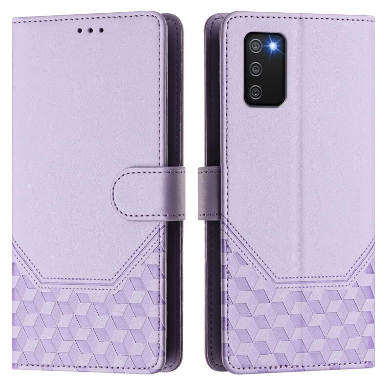 Για Samsung Galaxy A02s 164mm Honeycomb ανάγλυφο RFID δερμάτινη θήκη τηλεφώνου (ανοιχτό μωβ)