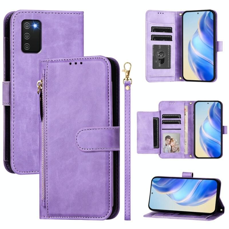 Για Samsung Galaxy A02s 164mm πολλαπλών καρτών υποδοχές φερμουάρ πορτοφόλι δερμάτινη θήκη τηλεφώνου (μωβ)
