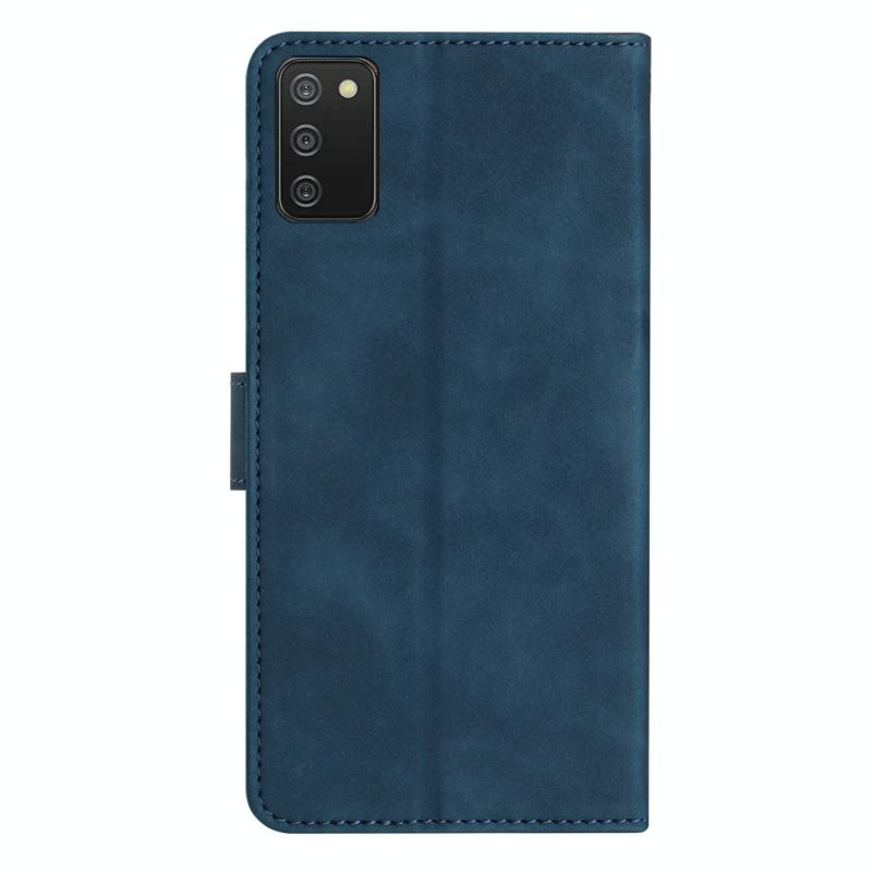 Θήκη τηλεφώνου δερμάτινη ανάγλυφη με σχέδια επτά πεταλούδων για Samsung Galaxy A02s 164mm (Μπλε)