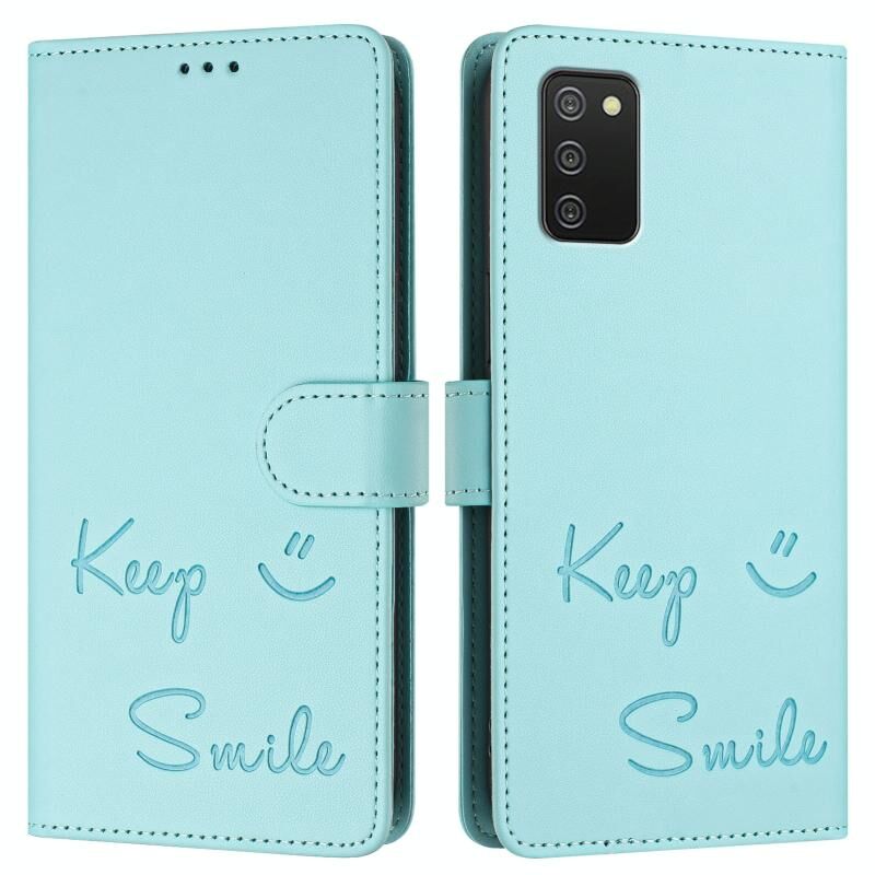 Για Samsung Galaxy A02s 164 χιλιοστά Smile ανάγλυφο RFID δερμάτινη θήκη τηλεφώνου (πράσινο μέντα)