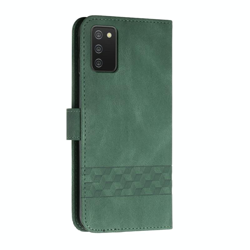 For Samsung Galaxy A02s 166mm Cubic Skin Feel Flip Leather Phone Case(Dark Green)