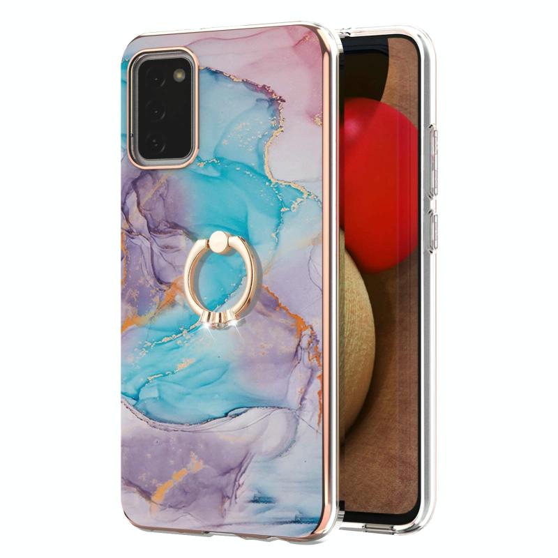 Θήκη προστασίας για Samsung Galaxy A02s 166mm με σχέδιο επιμετάλλωσης IMD TPU, ανθεκτική σε κρούσεις με δαχτυλίδι στήριξης και ρητίνες (Γαλαξιακό Μπλε Μάρμαρο)