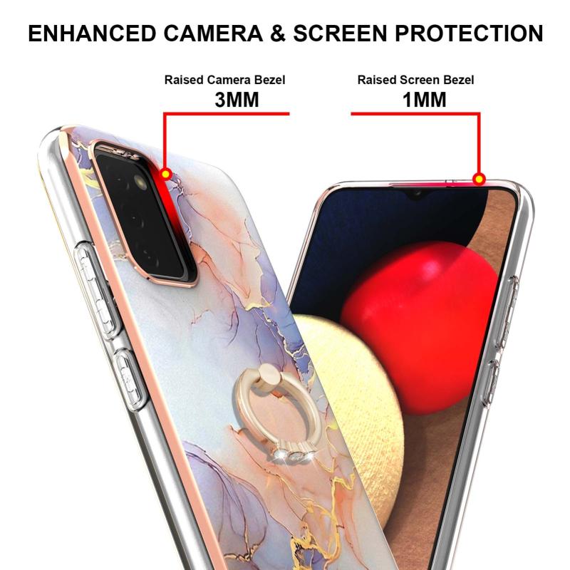 Θήκη προστασίας για Samsung Galaxy A02s 166mm με σχέδιο επιμετάλλωσης IMD TPU, ανθεκτική σε κρούσεις με δακτύλιο στήριξης και ρητίνες (Λευκό Μάρμαρο Γαλαξία).