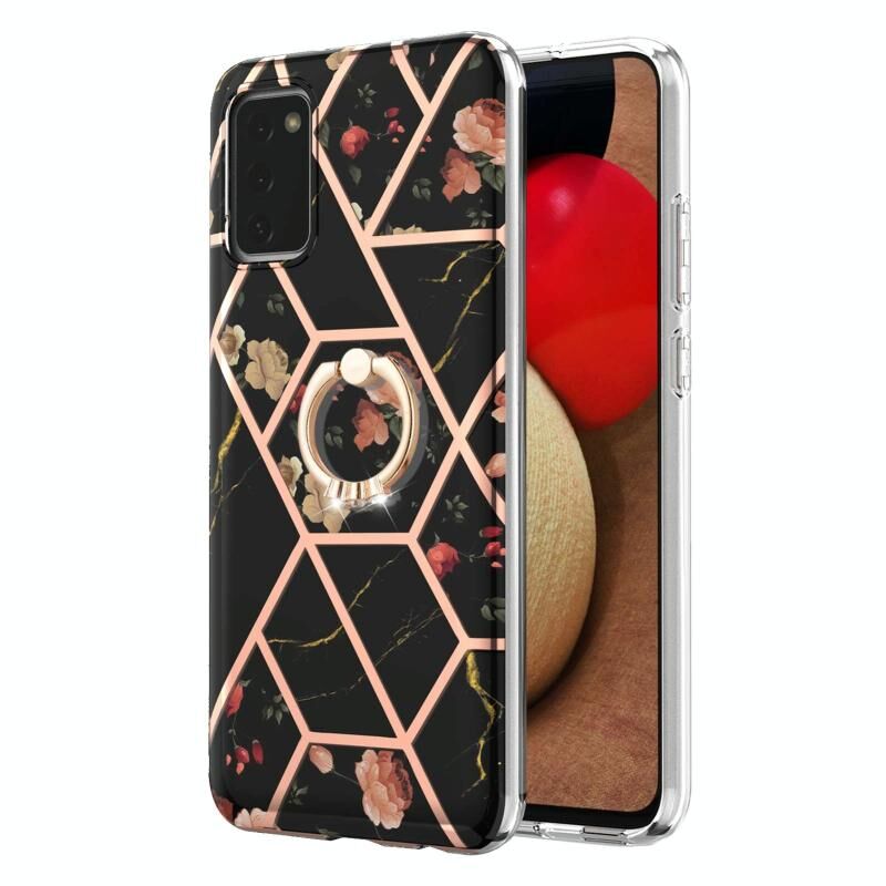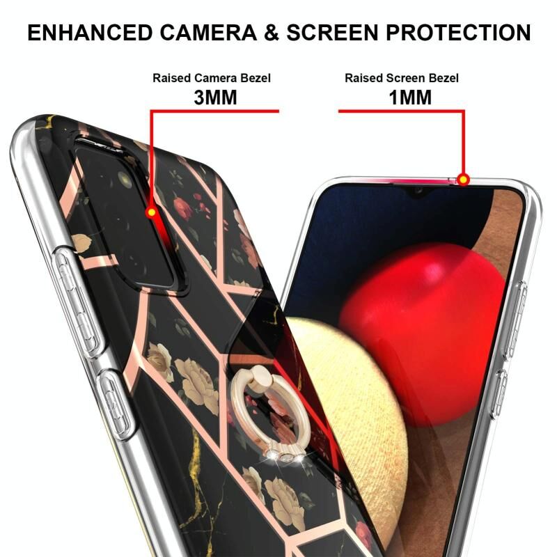 Θήκη προστασίας TPU με ενσωματωμένη βάση δακτυλιδιού από ρητίνη, αντικραδασμική, με σχέδιο μαρμάρου και λουλουδιών, γαλβανισμένη και συνδυασμένη, για Samsung Galaxy A02S 166mm (Ροζ Λουλούδι)