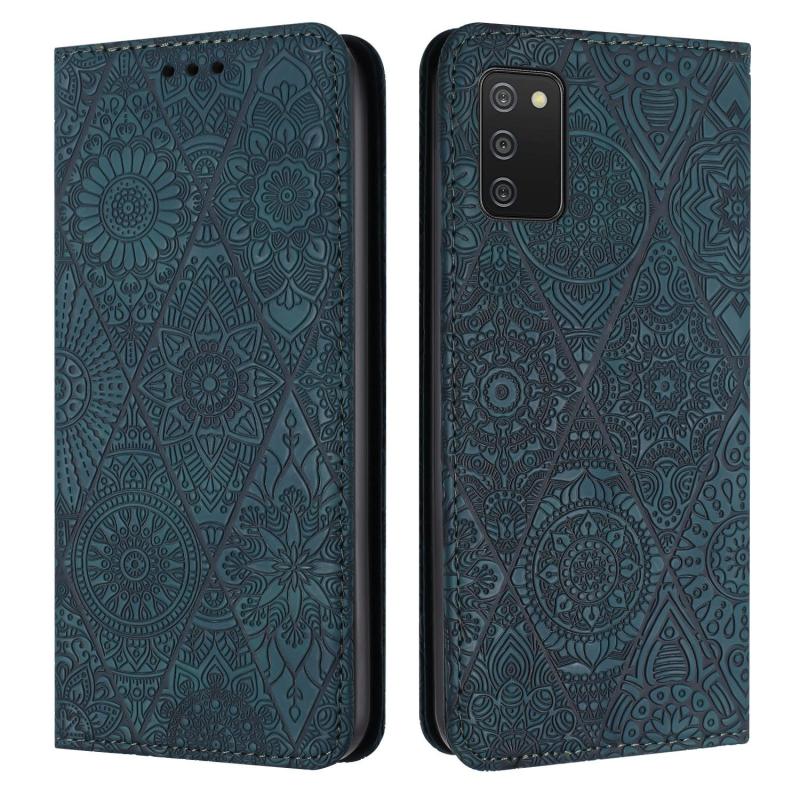 Θήκη τηλεφώνου Samsung Galaxy A02s 166mm Εθνικά ανάγλυφη, απορροφητική, δερμάτινη (Μπλε)