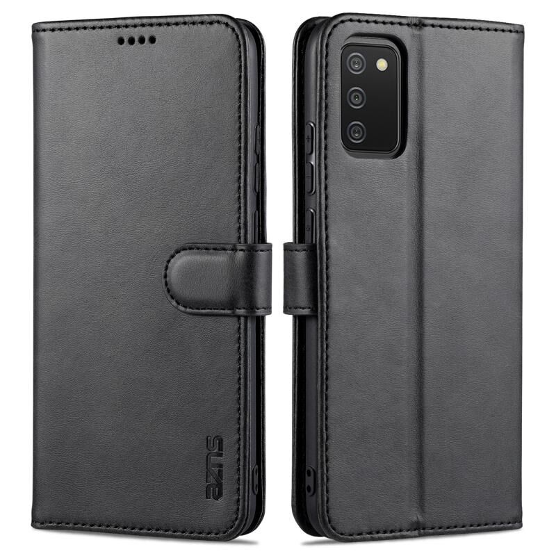 Για Samsung Galaxy A02s AZNS δέρμα αίσθηση μοσχάρι υφή οριζόντια Flip δερμάτινη θήκη με υποδοχές για κάρτες & κάτοχος & πορτοφόλι (μαύρο) (AZNS)