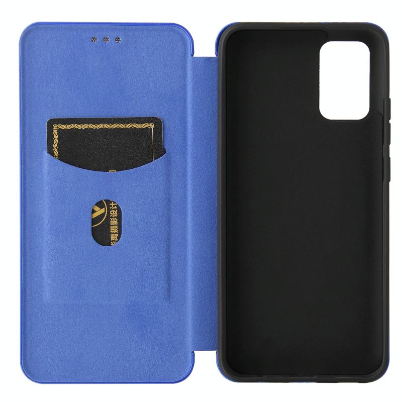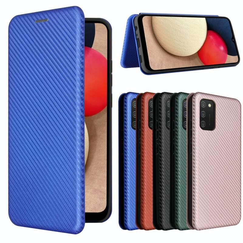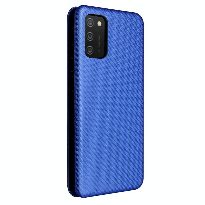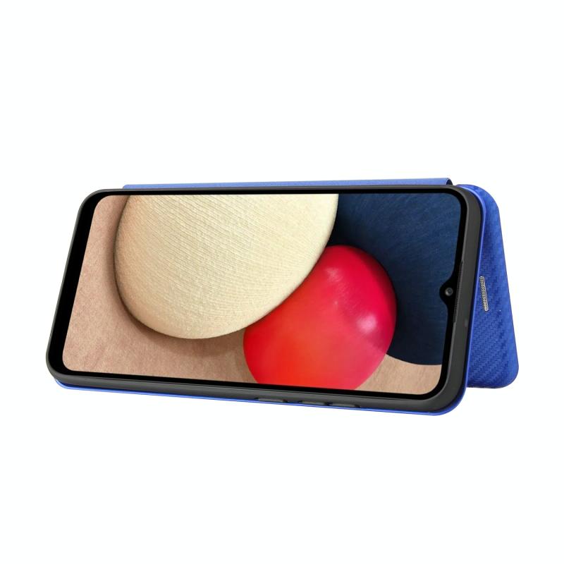 For Samsung Galaxy A02s Carbon Fiber Texture Horizontal Flip TPU + PC + PU Leather Case with Card Slot(Blue)