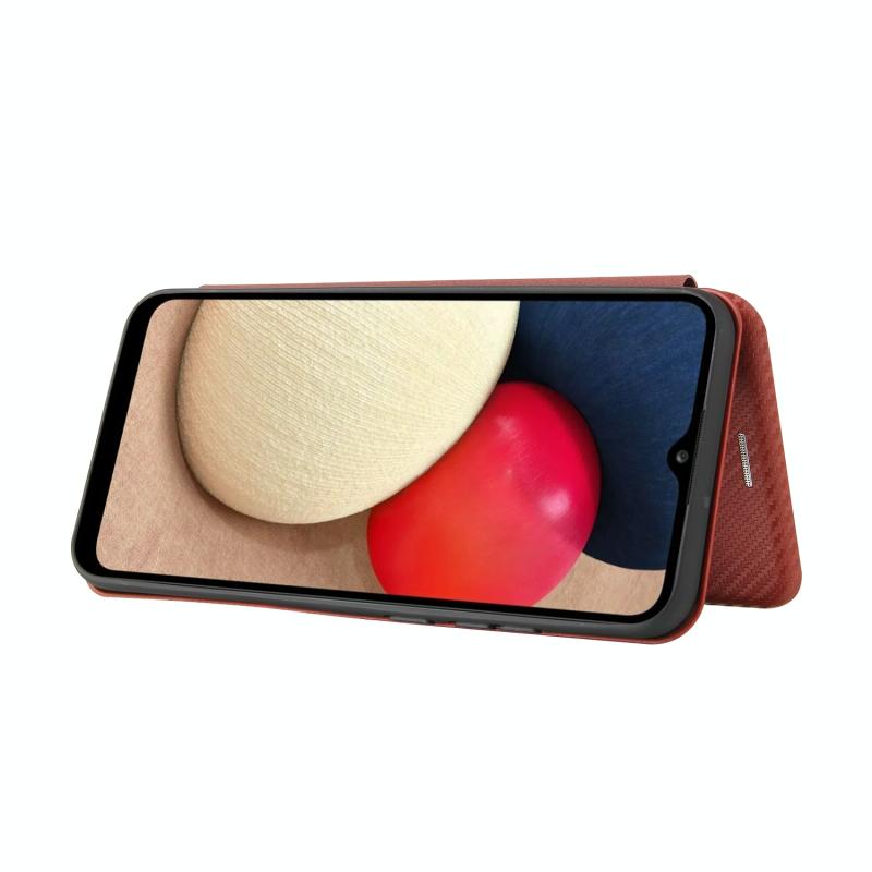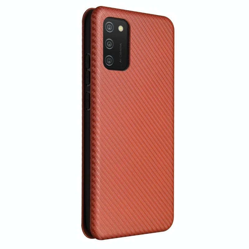 For Samsung Galaxy A02s Carbon Fiber Texture Horizontal Flip TPU + PC + PU Leather Case with Card Slot(Brown)