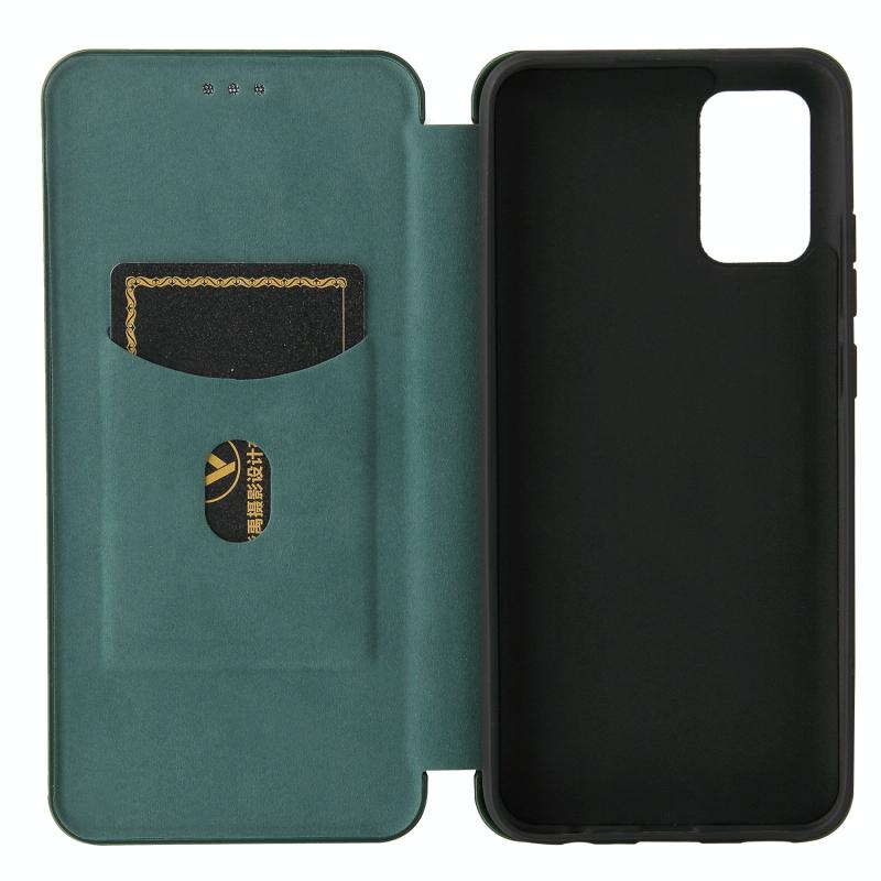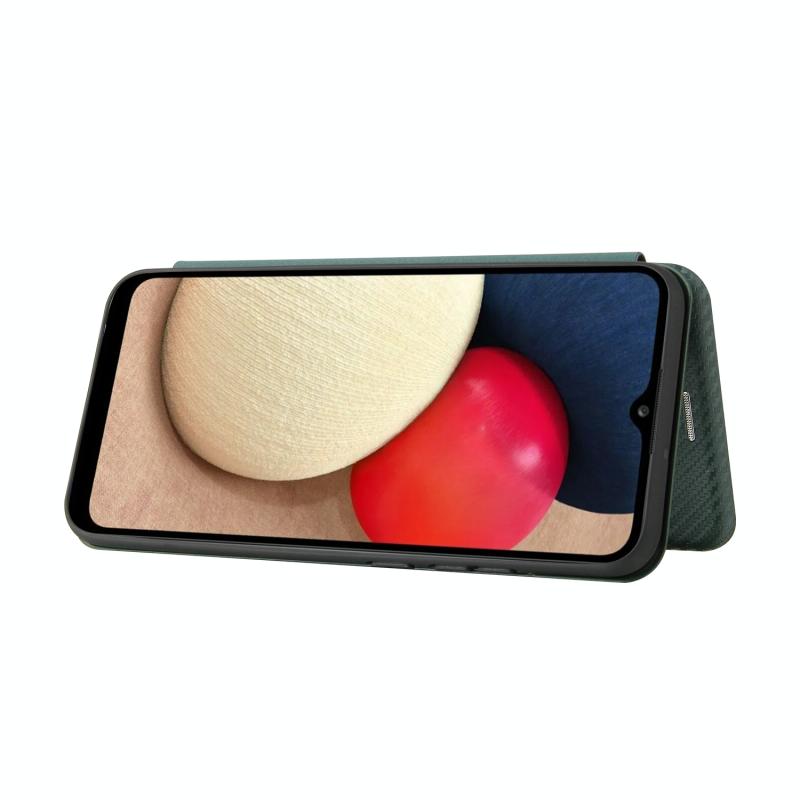 For Samsung Galaxy A02s Carbon Fiber Texture Horizontal Flip TPU + PC + PU Leather Case with Card Slot(Green)