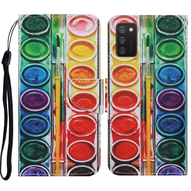Θήκη Samsung Galaxy A02s με σχέδιο πολύχρωμης ζωγραφικής, οριζόντια, από δερματίνη PU με βάση στήριξης & θήκες καρτών & πορτοφόλι & κορδόνι (Eye Shadow)