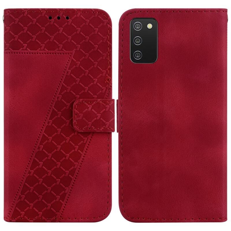 Θήκη τηλεφώνου από ανάγλυφο δέρμα σε σχήμα επτά για Samsung Galaxy A02s EU Edition 166.5mm (Κόκκινο)