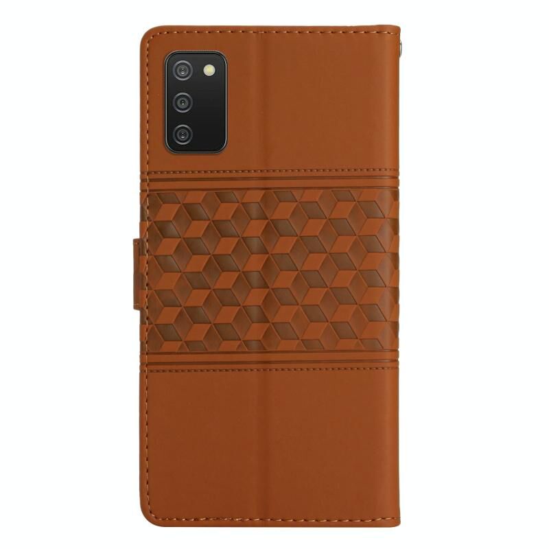 Για Samsung Galaxy A02s EU Edition Diamond ανάγλυφο δέρμα αίσθηση δέρμα τηλέφωνο υπόθεση με κορδόνι (καφέ)