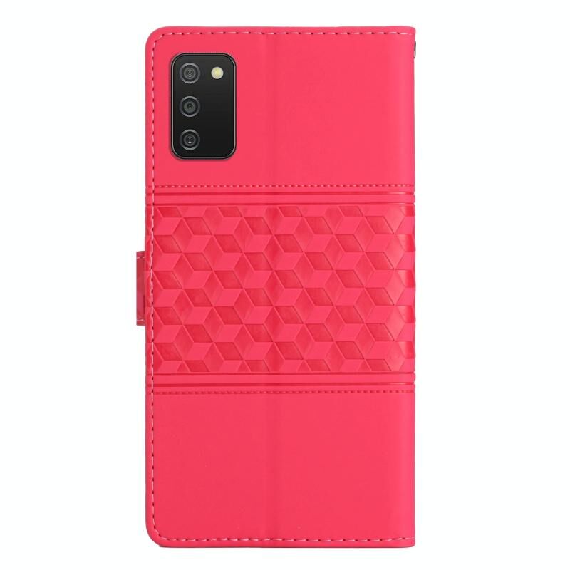 Για Samsung Galaxy A02s EU Edition Diamond ανάγλυφο δέρμα αίσθηση δέρμα τηλέφωνο υπόθεση με κορδόνι (κόκκινο)