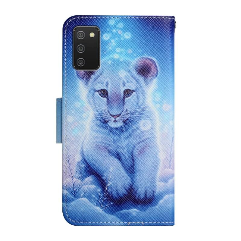 Θήκη δέρματος οριζόντιας αναδίπλωσης με σχέδιο (Λεοπάρδαλη) για Samsung Galaxy A02s Ευρωπαϊκής Έκδοσης, με βάση στήριξης & υποδοχή κάρτας & πορτοφόλι.