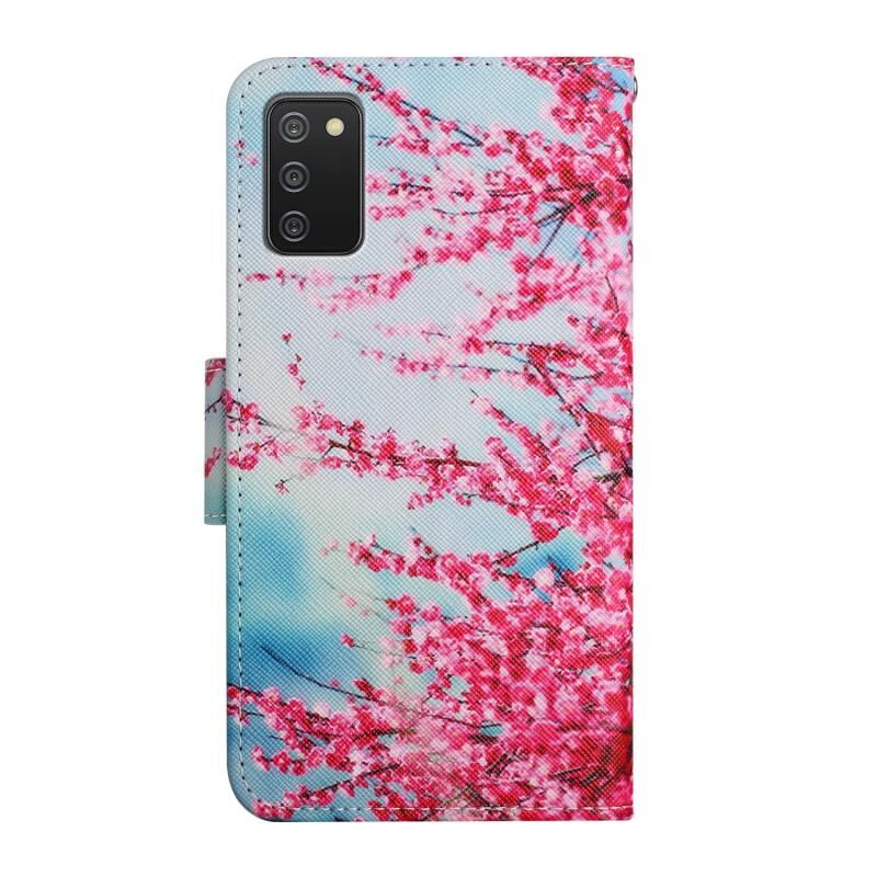 Θήκη δέρματος οριζόντιας αναδίπλωσης με σχέδιο, για Samsung Galaxy A02s EU Edition, με βάση & θήκη για κάρτες & πορτοφόλι (Κόκκινο Λουλούδι)
