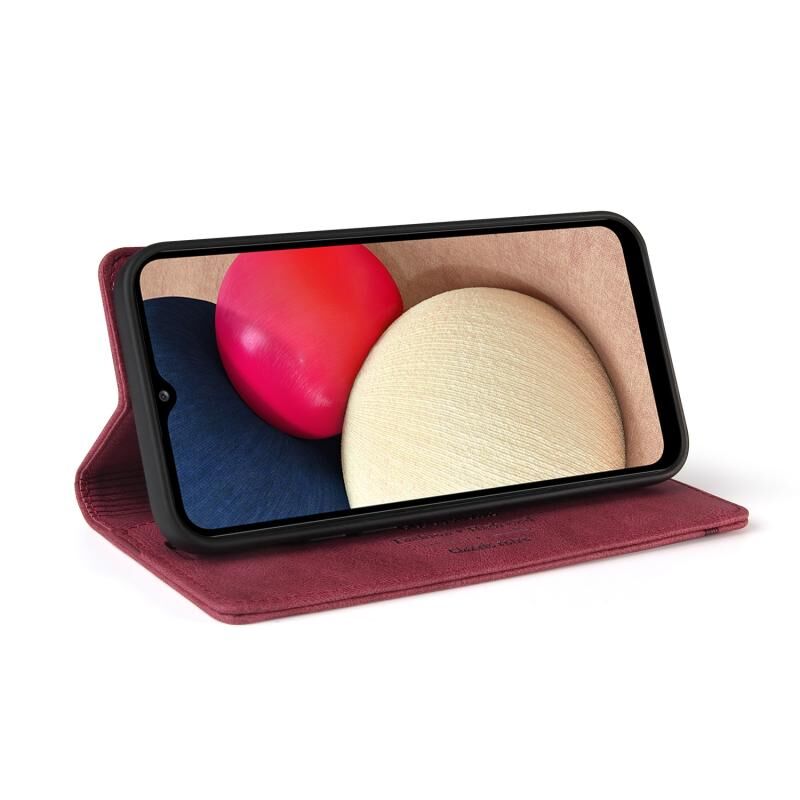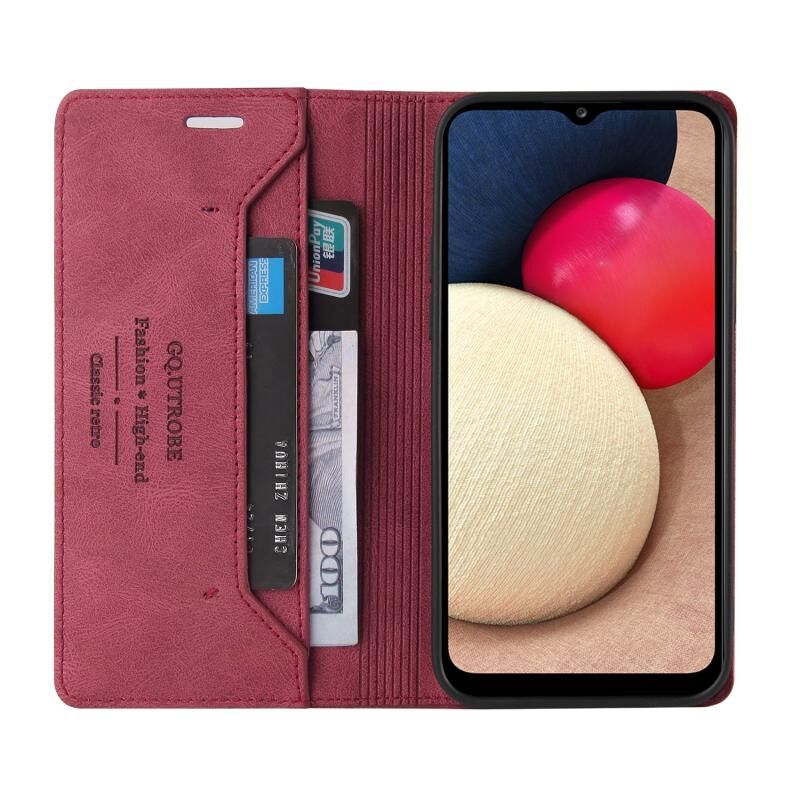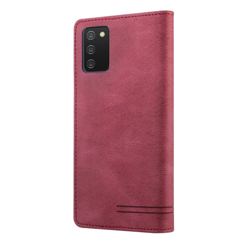 Για Samsung Galaxy A02s EU Edition Skin Feel Anti-theft Brush Οριζόντια Flip δερμάτινη θήκη με θήκη & υποδοχές καρτών & πορτοφόλι (κόκκινο κρασί)
