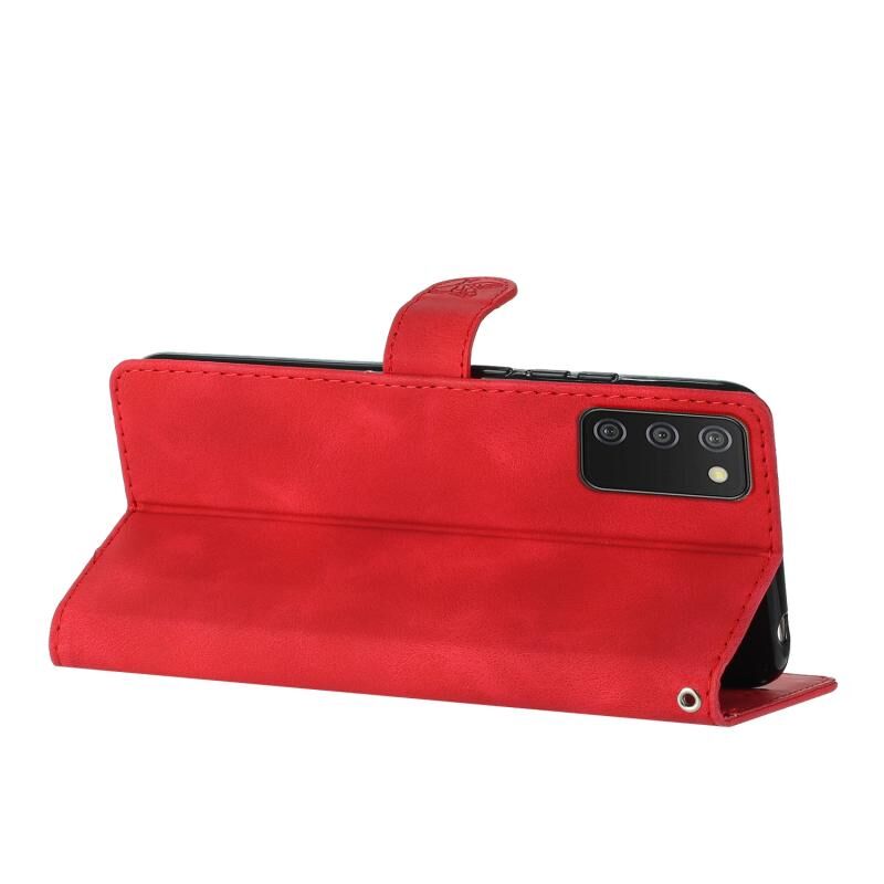 Για Samsung Galaxy A02s ΕΕ λουλούδι πεταλούδα ανάγλυφο μοτίβο δερμάτινη θήκη τηλεφώνου (Κόκκινο)