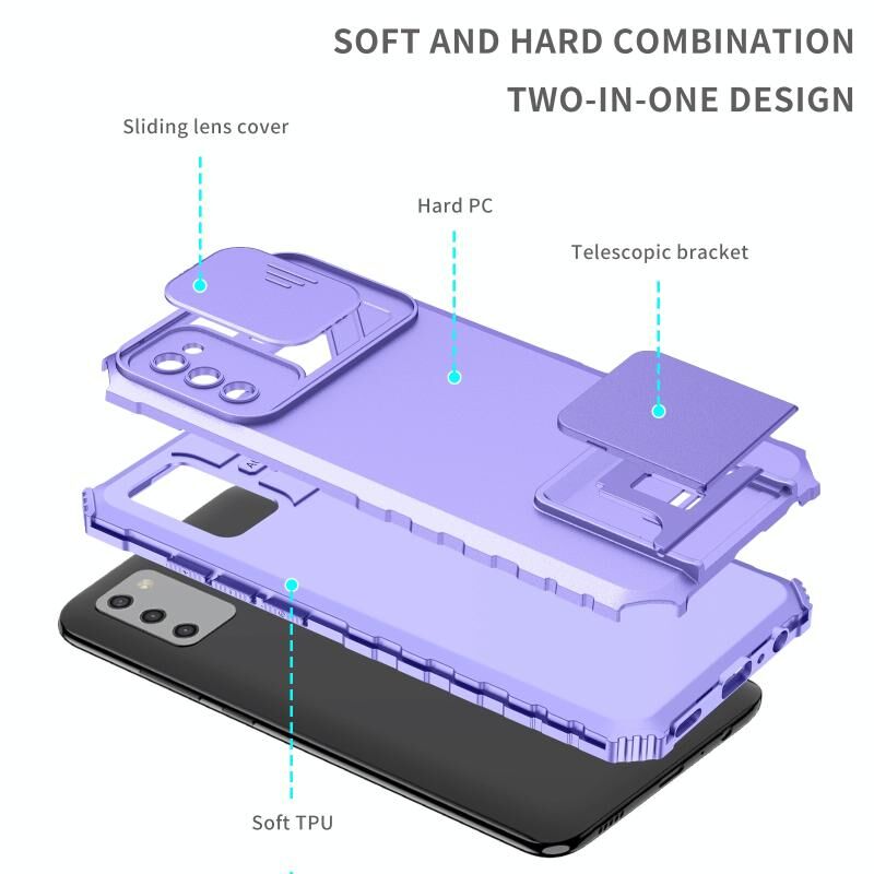 Για Samsung Galaxy A02s ΕΕ Στερεοσκοπική κάτοχος συρόμενη Camshield υπόθεση τηλεφώνου (Μωβ)