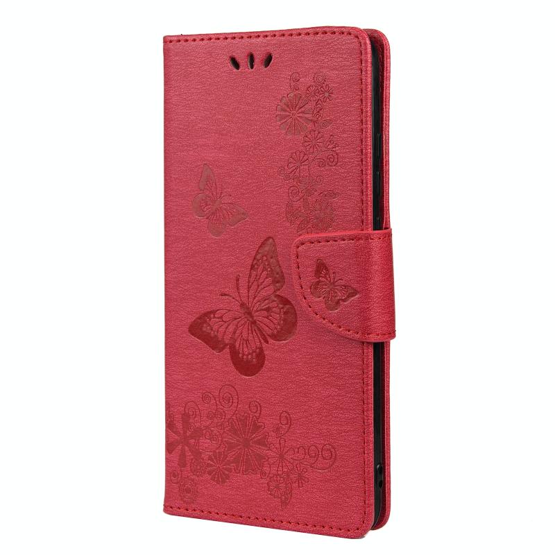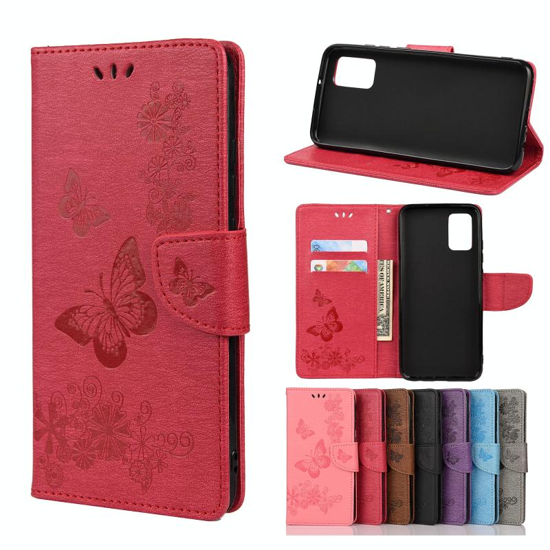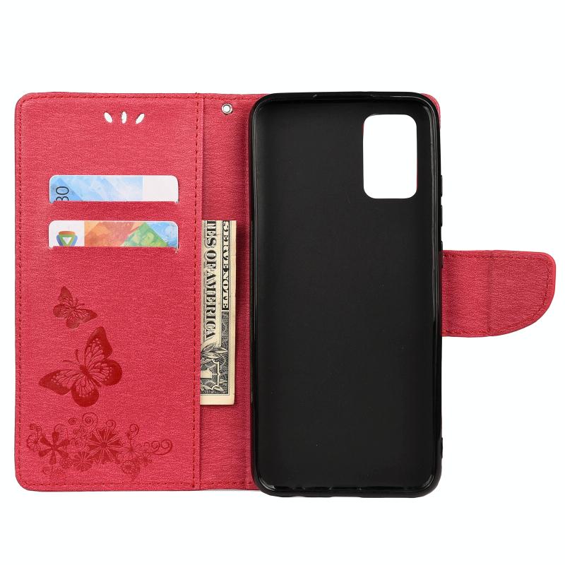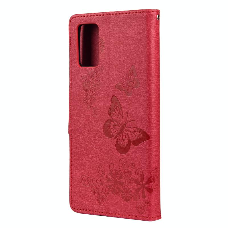 For Samsung Galaxy A02s (EU Version) Butterflies Embossing Horizontal Flip Leather Case with Holder & Card Slots & Wallet(Red)