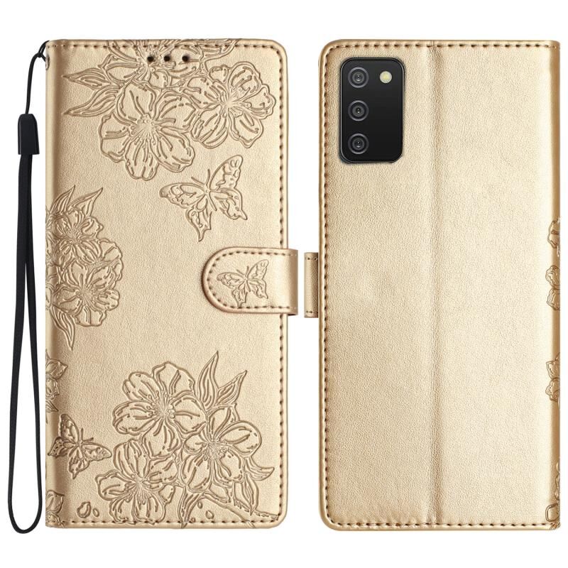 Θήκη τηλεφώνου Samsung Galaxy A02s EU Version Cherry Blossom Butterfly με ανάγλυφη υφή PU (Κόκκινη)