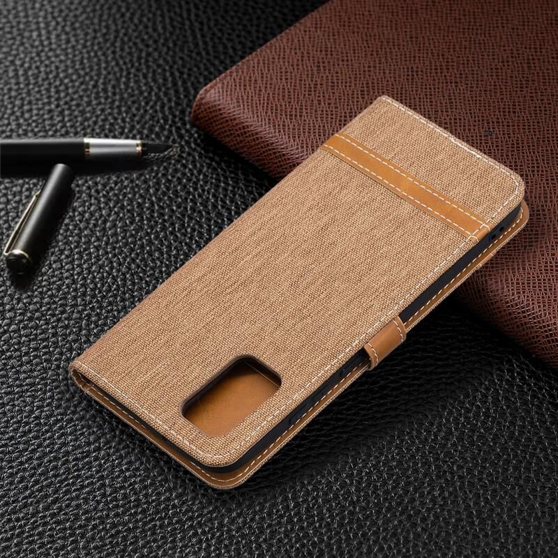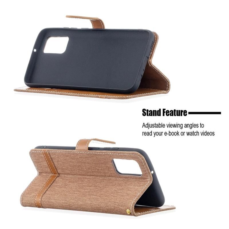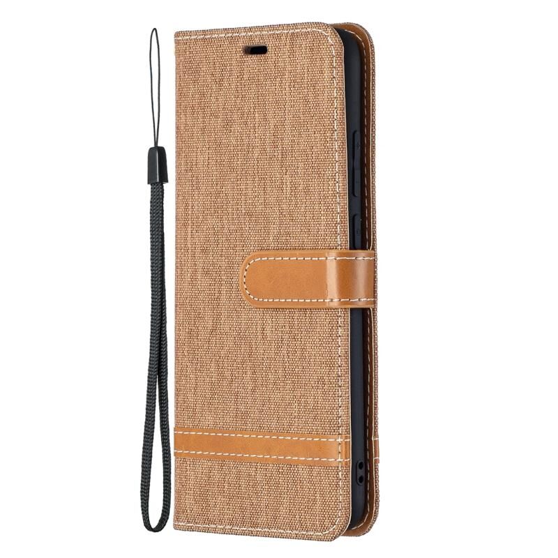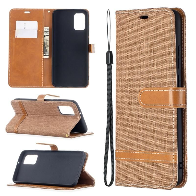 Για το Samsung Galaxy A02s (έκδοση ΕΕ) Χρωματικά ταιριαστή θήκη από οριζόντια δερμάτινη θήκη με υποδοχές για κάρτες, πορτοφόλι και κορδόνι (καφέ)