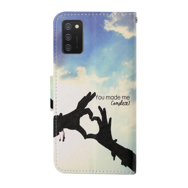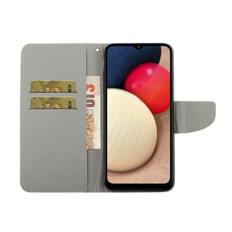 Θήκη δέρματος οριζόντιας αναδίπλωσης με σχέδια ζωγραφικής και χρώματα για Samsung Galaxy A02s (Ευρωπαϊκή Έκδοση) με βάση στήριξης, θήκες καρτών, πορτοφόλι και κορδόνι (Κόκκινο)