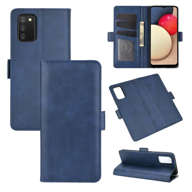 Για Samsung Galaxy A02s (έκδοση ΕΕ) Διπλής όψης μαγνητική πόρπη οριζόντια Flip δερμάτινη θήκη με θήκη & υποδοχές για κάρτες & πορτοφόλι (σκούρο μπλε)