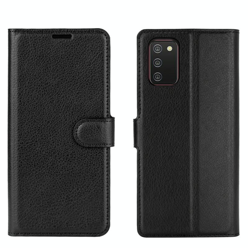 Για Samsung Galaxy A02s (έκδοση ΕΕ) Litchi Υφή οριζόντια Flip προστατευτική θήκη με θήκη & υποδοχές για κάρτες & πορτοφόλι (μαύρο)