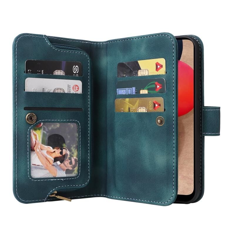 Για Samsung Galaxy A02s έκδοση ΕΕ πολυλειτουργική κάρτα Slot φερμουάρ πορτοφόλι δερμάτινη θήκη τηλεφώνου (μπλε)