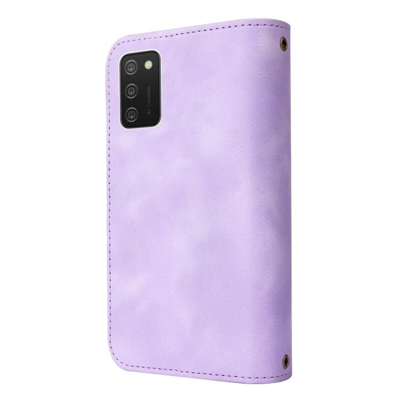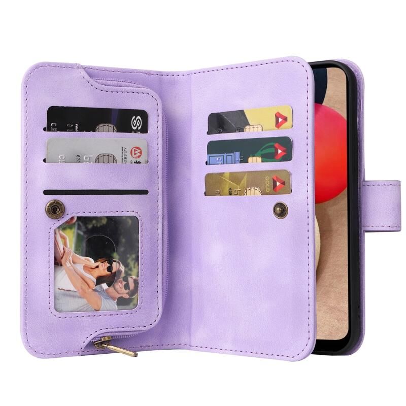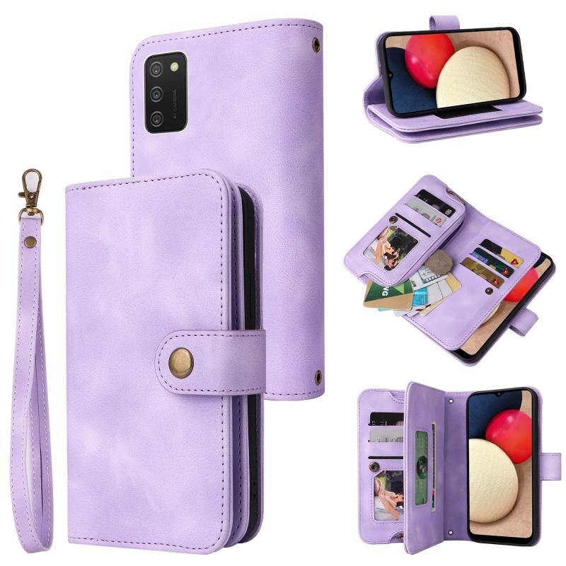 Για Samsung Galaxy A02s έκδοση ΕΕ πολυλειτουργική κάρτα Slot φερμουάρ πορτοφόλι δερμάτινη θήκη τηλεφώνου (μωβ)