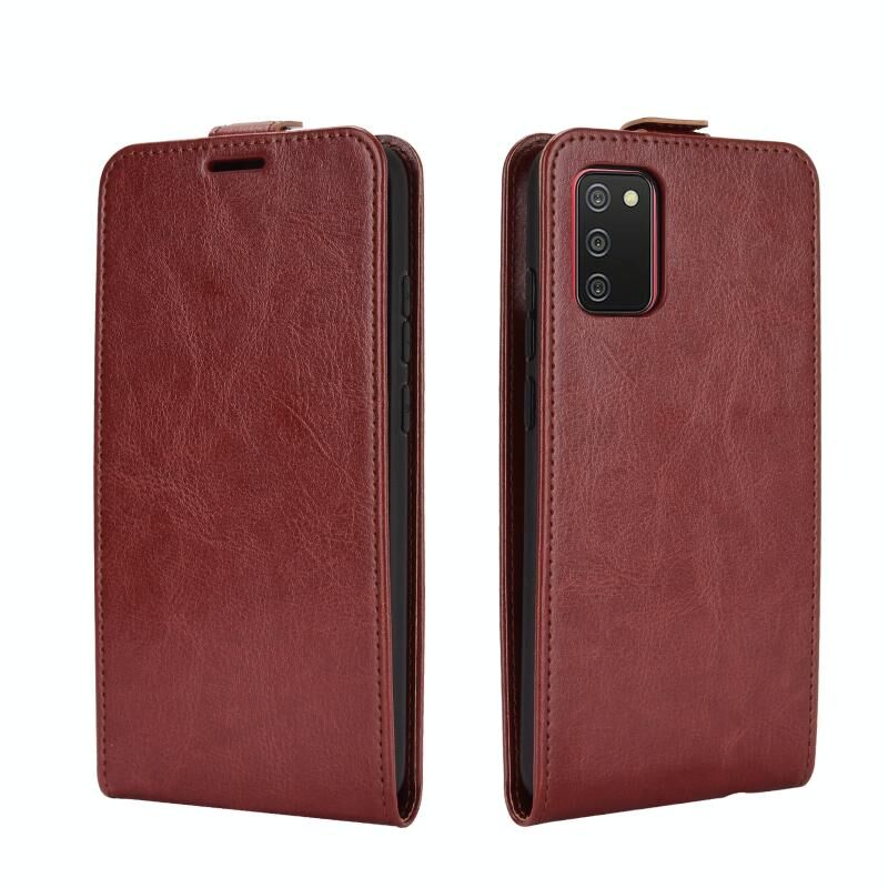 Για το Samsung Galaxy A02s (έκδοση ΕΕ) R64 Υφή Μονή κάθετη Flip δερμάτινη προστατευτική θήκη με υποδοχές για κάρτες & πλαίσιο φωτογραφιών (Καφέ)